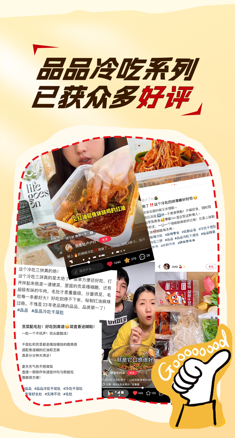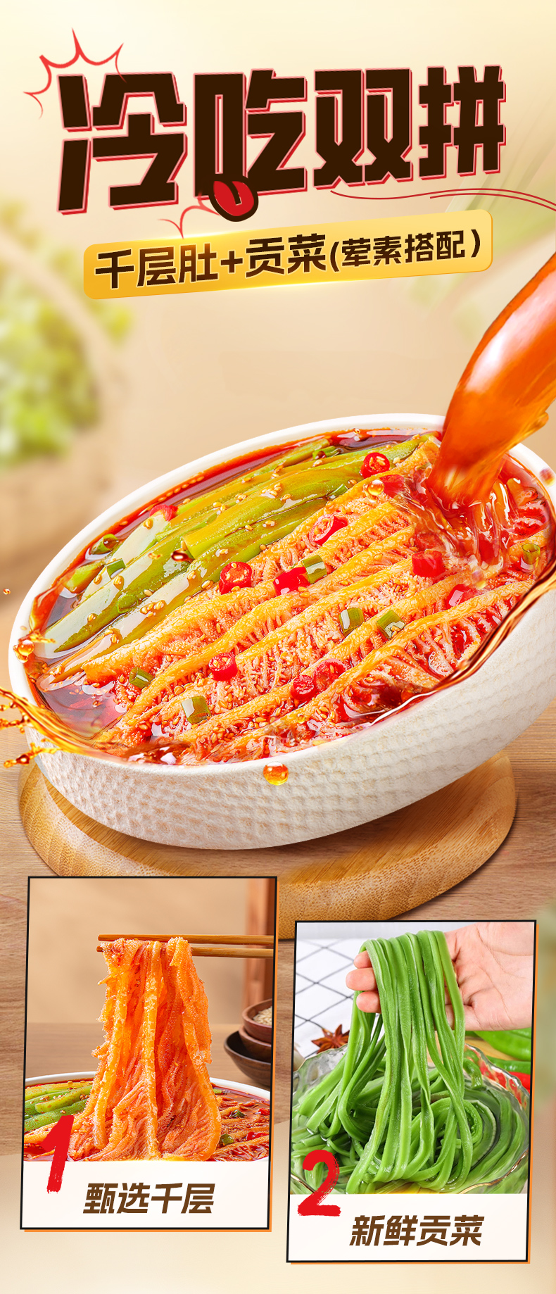 品品冷吃千层肚+贡菜双拼毛肚麻辣川香风味开袋即食小吃嘴馋零食T