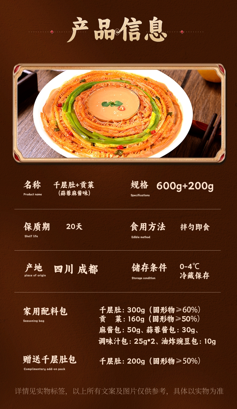 - ¥29.90800g(600g冷吃双拼+200g千层肚),蒜香麻酱味