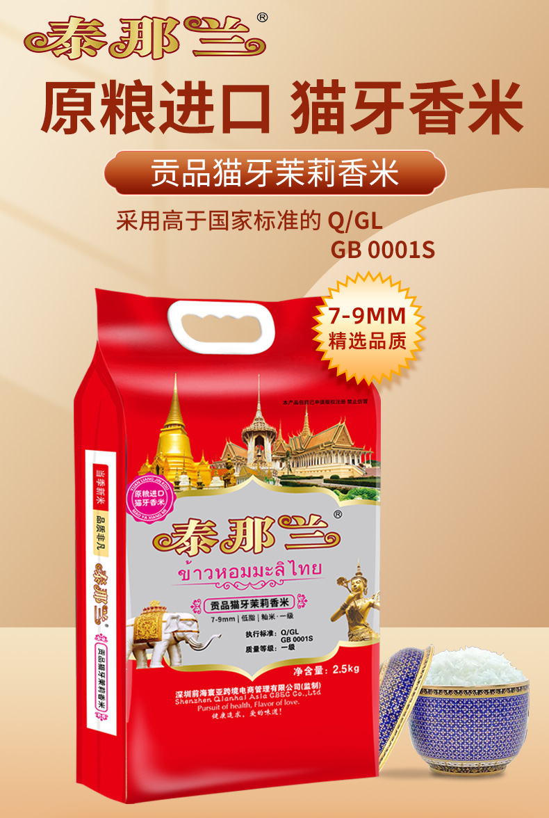 泰国香米,正宗猫牙长粒香米,供给线下高档商超,五星酒楼大饭店的,它是长粒香米中的天花板