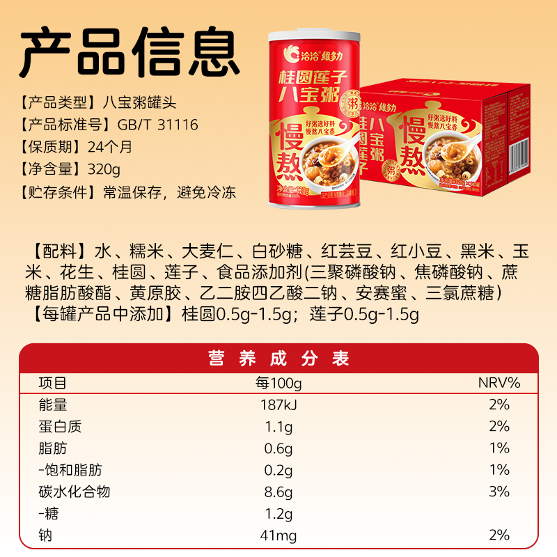 【洽洽八宝粥】桂圆莲子八宝粥320g*6罐装 慢熬健康营养早餐必备