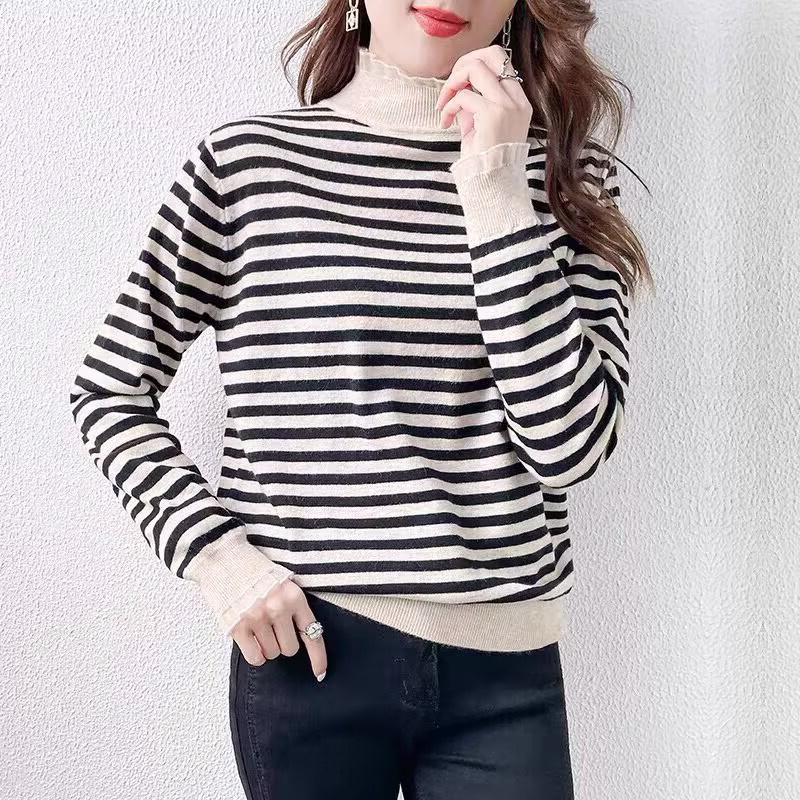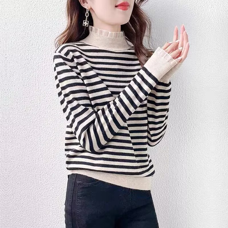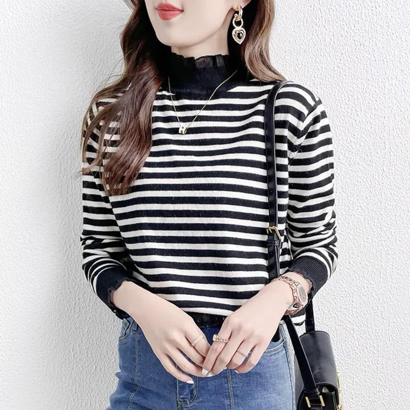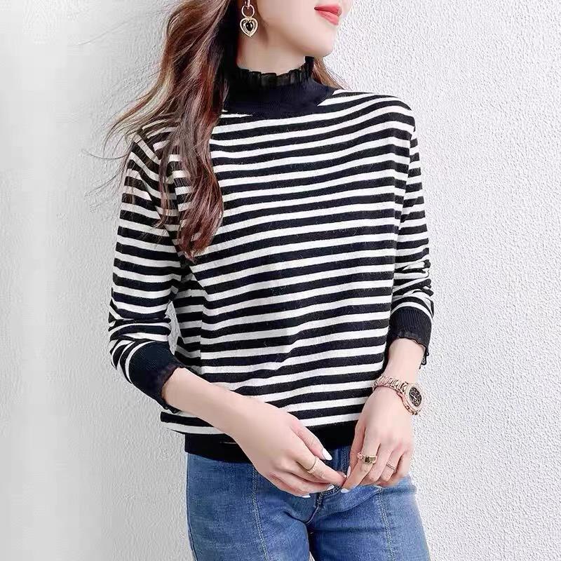 2117蕾丝领显瘦针织打底上衣打底衫内搭长袖修身