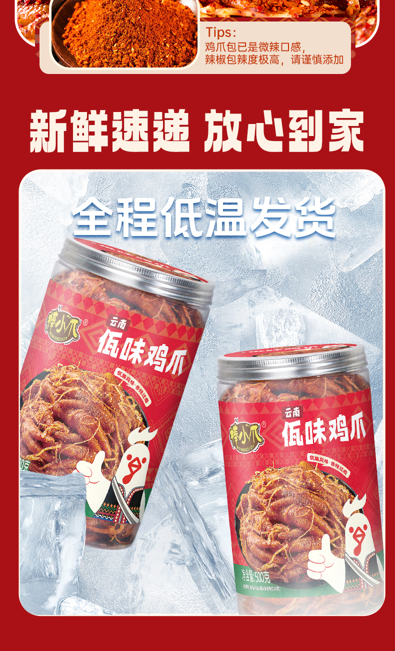 - ¥29.90云南佤味鸡爪(纯凤爪),500g(470克鸡爪+30克辣椒粉),3天内发货