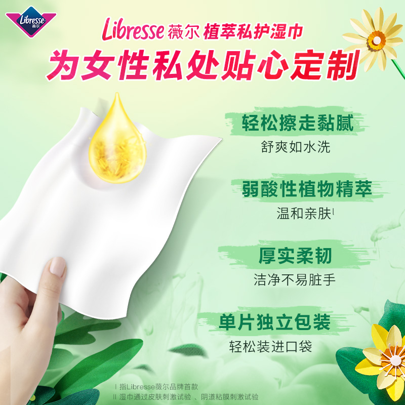 便捷又安心,Libresse薇尔植萃私护湿巾是经期好帮手!