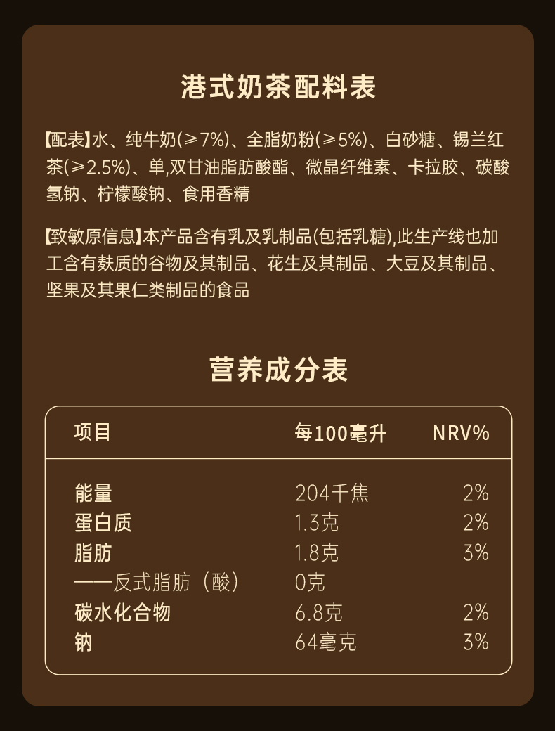 - ¥219.00280ml*1瓶(一箱共6瓶),【3箱】港式罐装奶茶(280ml*18瓶)