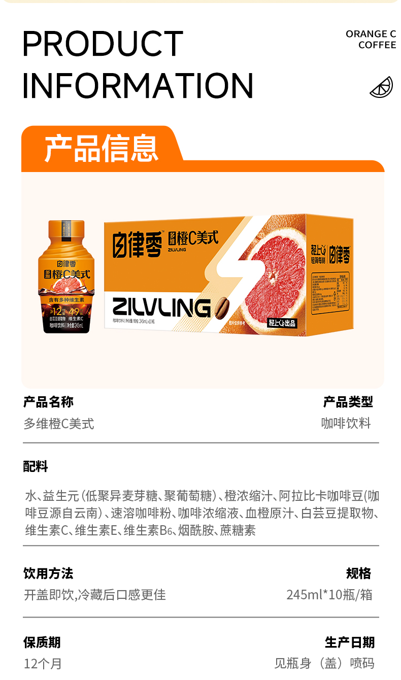 以下是从不同侧重点生成的5条买家评论,供您参考: --- **评论1(口感惊艳型)** "第一次喝橙C美式就被惊艳到了!橙子的清甜和黑咖啡的醇苦完美融合,完全不酸涩!开盖就能闻到淡淡的果香,喝起来像在喝现调的特饮,比普通美式有层次多了!关键10瓶才29.9,性价比绝了,已经回购两箱当早餐饮品!" *** **评论2(健康需求型)** "健身党必入!配料表超干净,没有乱七八糟的添加剂,果汁含量很实在,喝起来完全不像普通咖啡饮料那么甜腻。245ml小瓶装刚好控制摄入量,运动前喝一杯提神又低卡,门店同款品质果然靠谱!" *** **评论3(便捷实用型)** "打工人救命水!早上赶时间抓一瓶塞包里,到公司直接开盖喝,比排队买咖啡省事多了。冷喝口感更清爽,橙味中和了咖啡的苦,对不常喝黑咖啡的人也很友好。10瓶装刚好够喝一周,会继续囤货!" *** **评论4(对比推荐型)** "试过好多款果味咖啡,这款是唯一喝完想立刻复购的!之前买的要么果汁味太假,要么咖啡味太淡,这个比例拿捏得刚刚好。29.9十瓶的价格比便利店单买便宜一半,推荐给喜欢尝新的咖啡爱好者!" *** **评论5(细节挑剔型)** "包装很用心,瓶身有防滑设计,单手开盖不洒液。橙C美式的酸甜平衡做得很好,冷藏后口感更佳。虽然瓶小但容量刚好,不会像大瓶装喝不完浪费。希望以后能出更大规格的家庭装,总体非常满意!" --- 以上评论结合了口感描述、场景适配、价格对比等真实购买决策点,可根据实际需求调整细节。