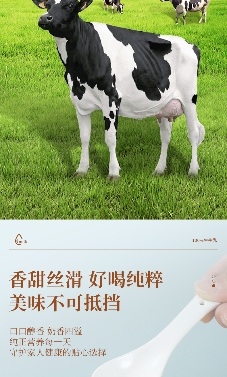 "家里老人小孩都爱喝这款纯牛奶,奶味浓郁没有腥味,喝着特别放心。6袋装分量足,放冰箱慢慢喝。价格比超市便宜不少,奶厂补贴活动太划算了!生鲜专线配送也很快,第二天就到,包装严实没破损。会继续回购!"