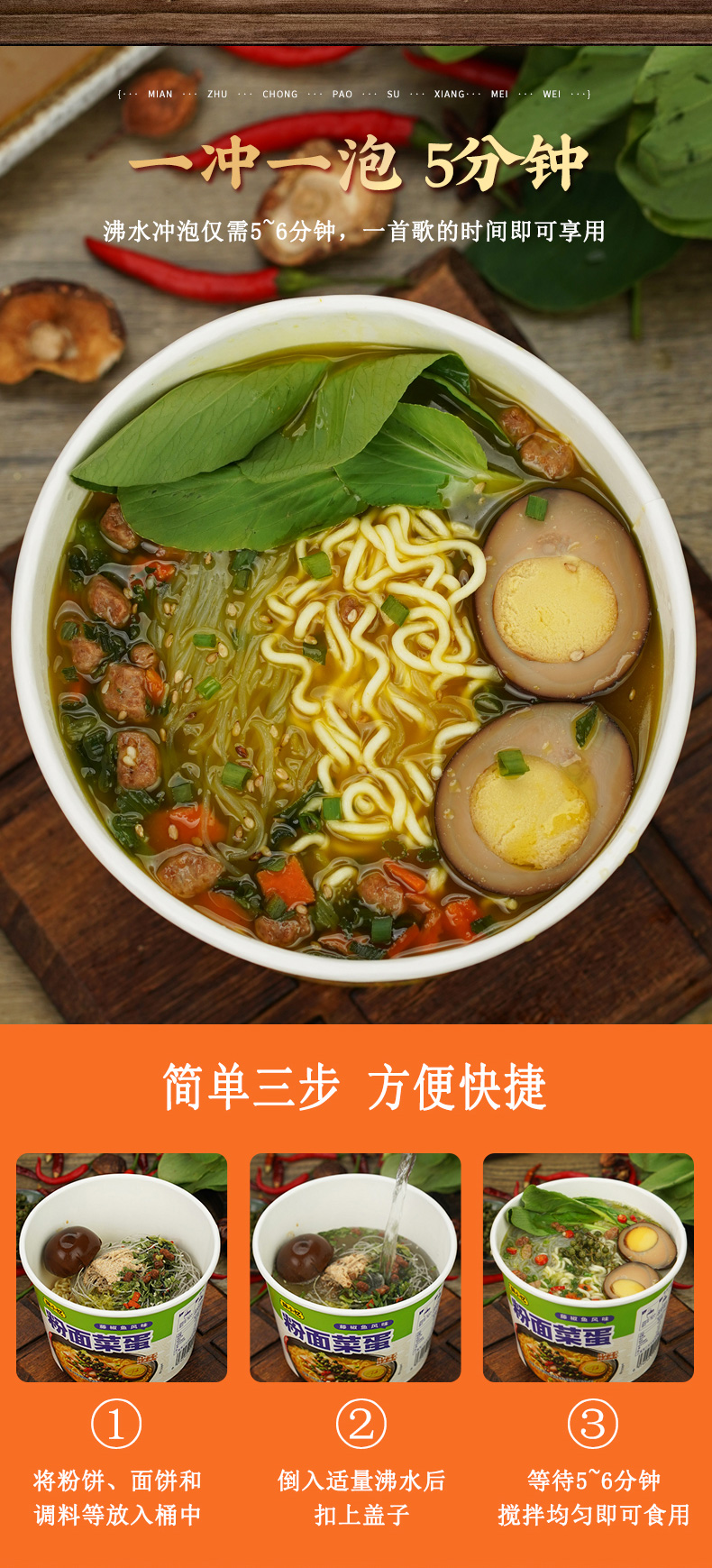 【多口味 桶桶有蛋】粉面菜蛋188g*6桶/箱方便速食懒人宵夜冲泡即食