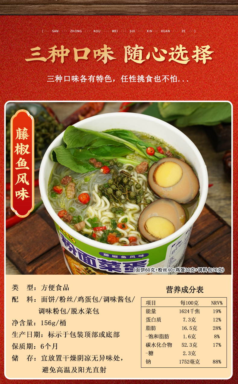 - ¥23.90金汤肥牛味188g*3桶+藤椒鱼味156g*3桶