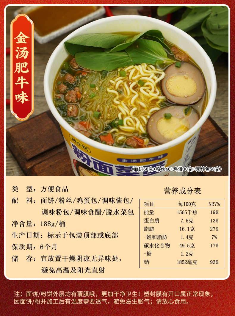 - ¥23.90金汤肥牛味188g*6桶(有粉有面)