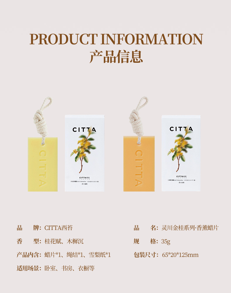 CITTA/西苔灵川金桂植物精油香氛持久留香室内香薰蜡片35g