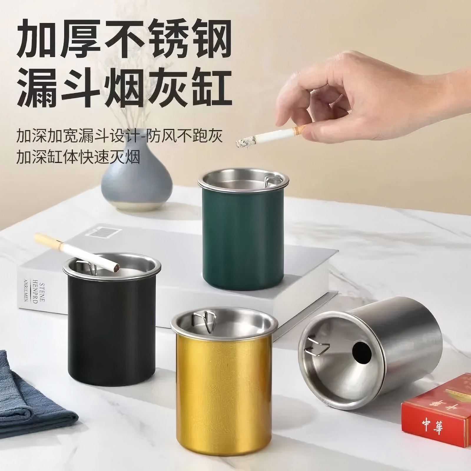 【漏斗烟灰缸】不锈钢烟灰缸带烟扣潮流创意防风个性客厅卧室烟灰缸