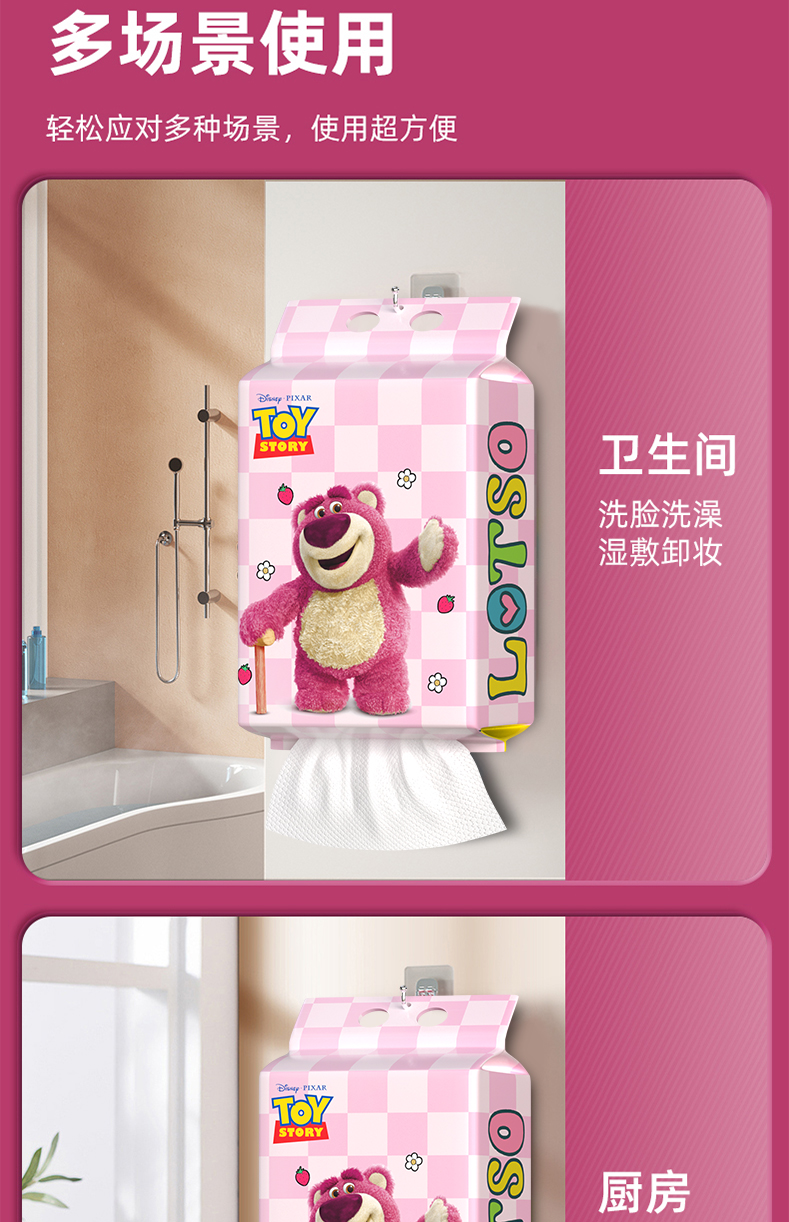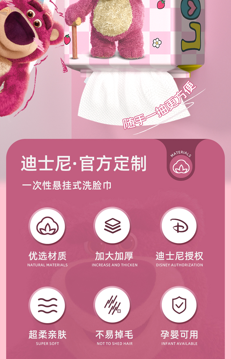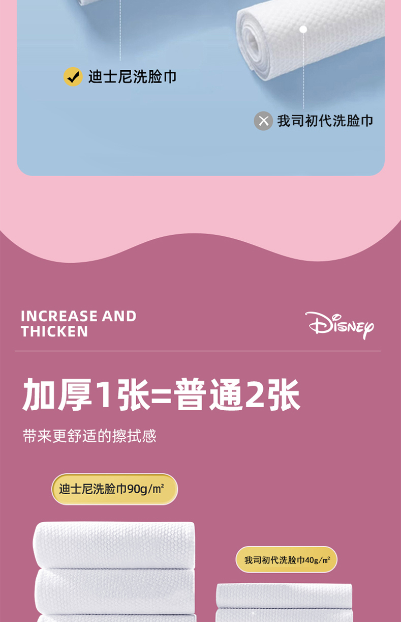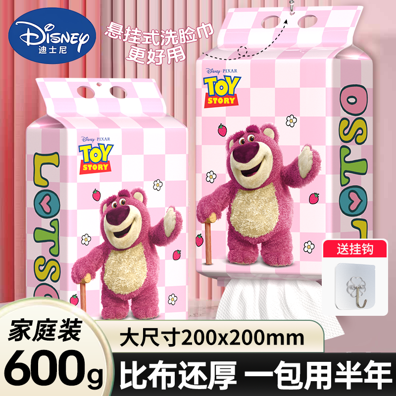 Disney官方正品【600g160抽加大加厚】家庭悬挂干湿两用棉柔洗脸巾
