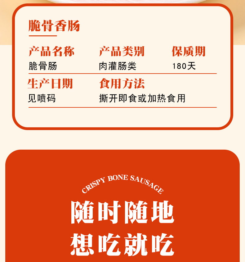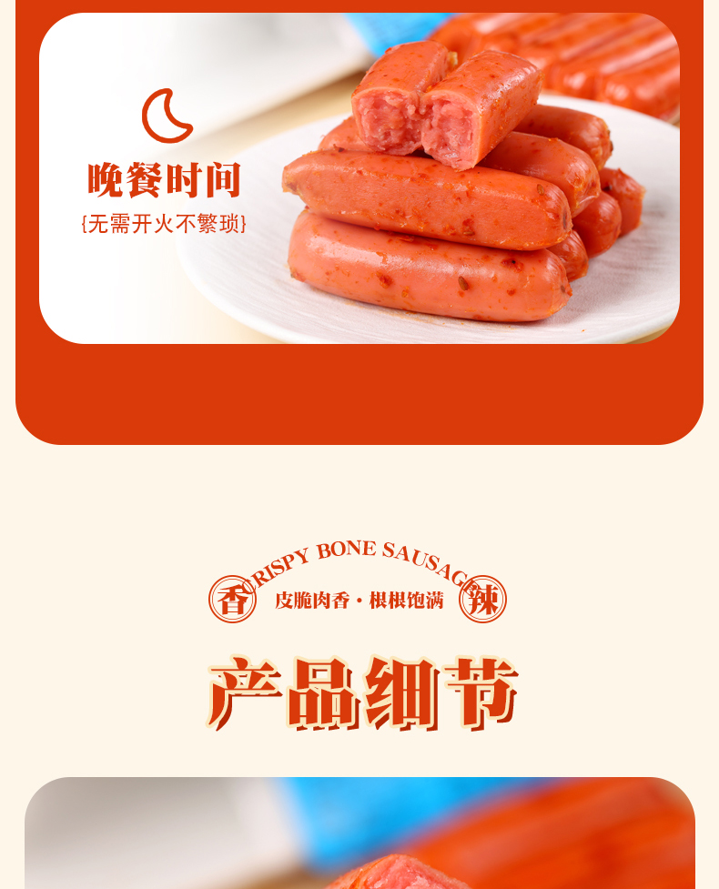 - ¥9.9955g*8袋,香辣味脆骨肠8包共40根