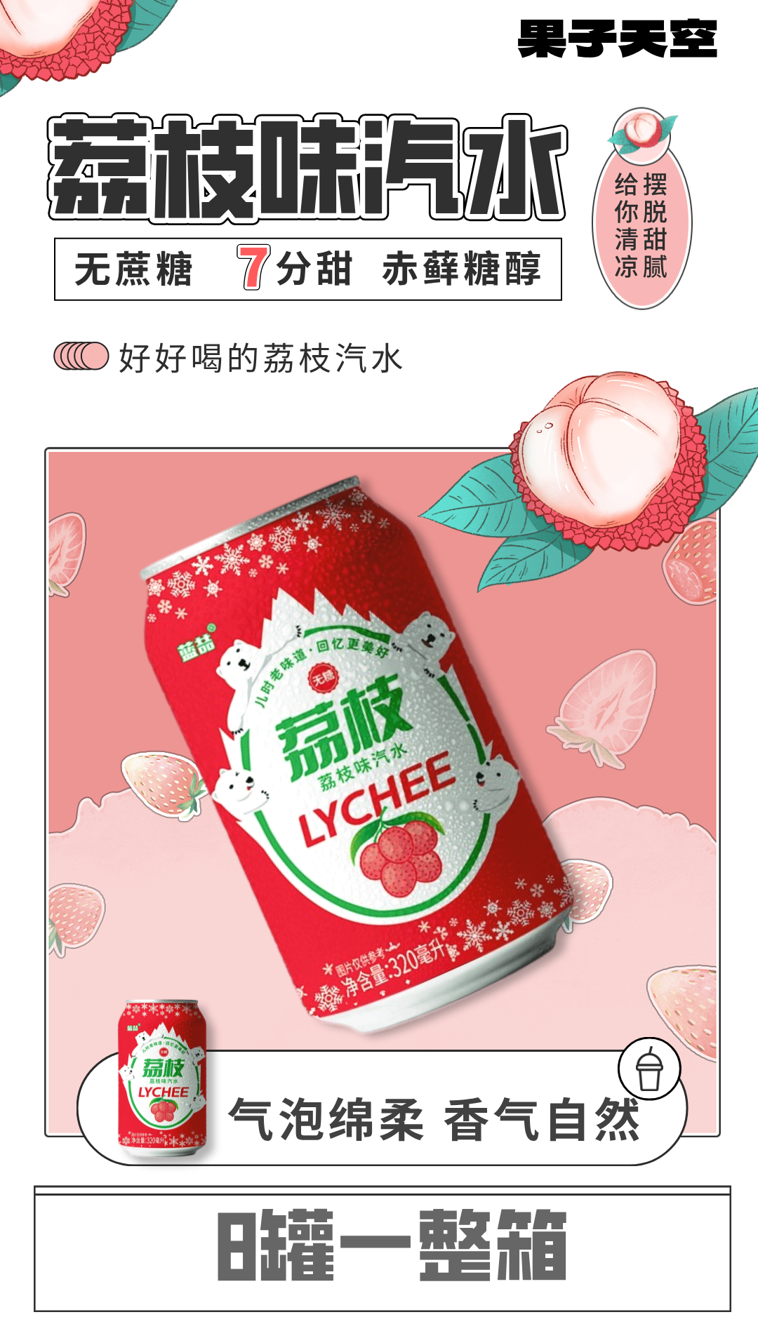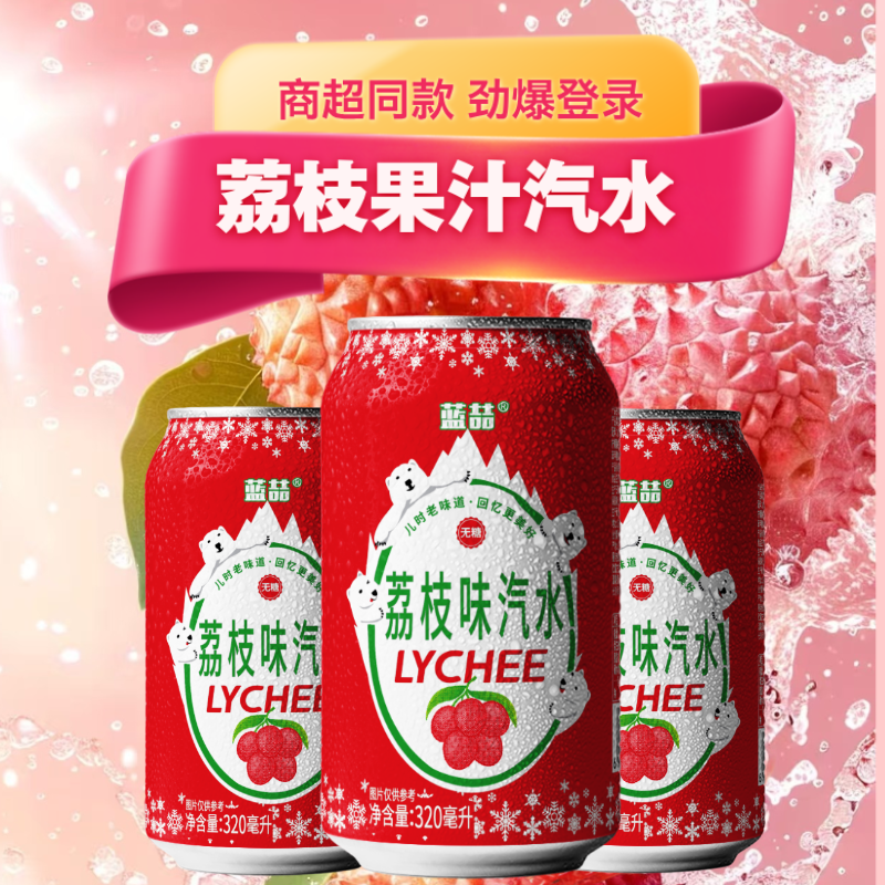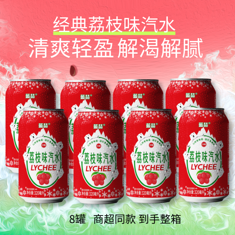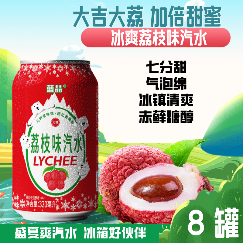 【经典老味】8罐荔枝味无糖汽水冰镇解腻饮料清爽网红饮品果味零食
