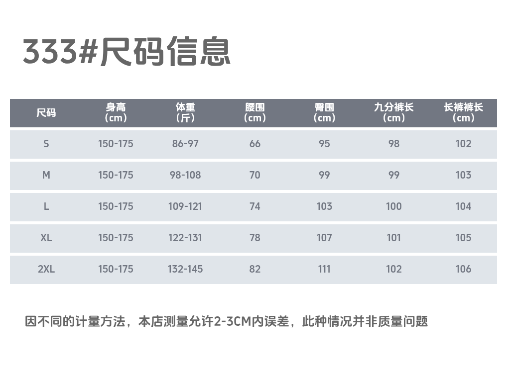 - ¥39.90黑色(长裤),2XL(130-145)