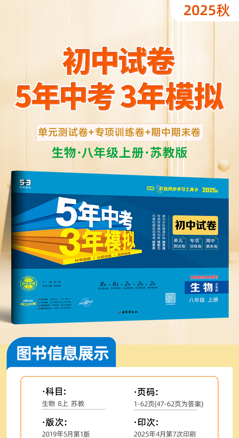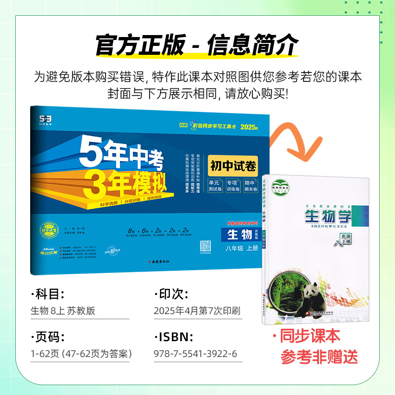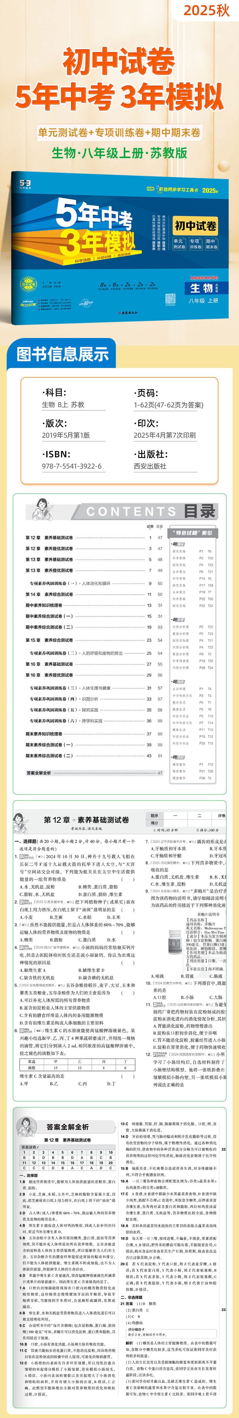 2025秋新版五年中考三年模拟模拟试卷生物八年级上册苏教版必刷题