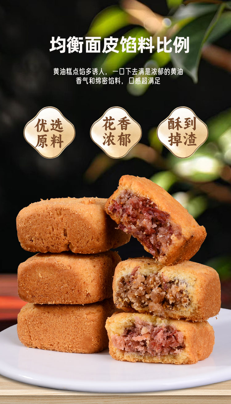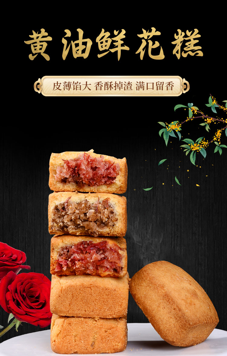 **评论一(学生党种草版)** "终于找到适合宿舍囤货的解馋神器了!22枚混合装才17.8,玫瑰牡丹桂花三种口味一次满足,追剧时一口一个根本停不下来!糕体软fufu的,咬开能看到花瓣碎,甜度刚刚好不腻人,配牛奶当早餐也很赞~性价比绝了,已安利给全班!" *** **评论二(家庭分享版)** "给家里老人孩子买的混合装,全家人都夸好吃!玫瑰糕花香浓郁,牡丹糕清甜不腻,桂花糕更是秋日氛围感拉满~独立小包装干净卫生,22枚一大箱够吃一周。价格比超市散称的还便宜,准备再囤两箱当下午茶点心!" *** **评论三(口味测评版)** "三款都尝过,个人排名:桂花糕>玫瑰糕>牡丹糕!黄油香和花香融合得超妙,冷藏后口感更扎实,微波炉叮10秒又变回软糯。17.8元22枚还要啥自行车?不过甜食控注意,一次吃超过3个会有点点腻哦~" *** **评论四(回购感恩版)** "回购第三次了!混合装永远的神,不知道选哪个口味就买这个准没错。比单买黄油玫瑰/牡丹/桂花糕划算多了,每天上学塞两个在书包里,课间和同学分着吃超快乐。希望商家永远别下架这个组合!"