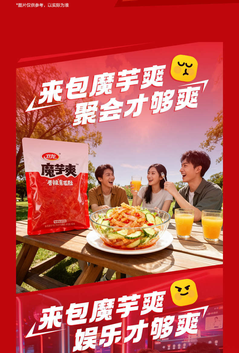 - ¥69.90卫龙超大魔芋爽400g*1袋+魔芋爽香辣(300g*1+50g*2)+魔芋爽酸辣300g*1+魔芋爽麻酱300g*1