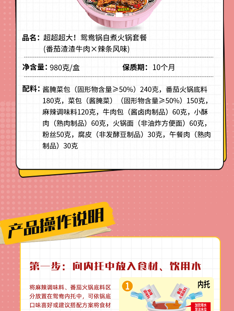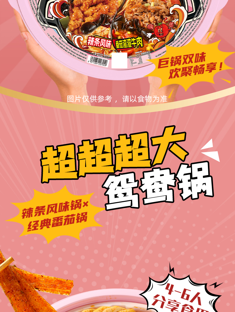 - ¥129.00超大鸳鸯锅【番茄渣渣牛肉x辣条风味】980g*1盒+超大鸳鸯锅【清油麻辣x浓香番茄】940g*1盒