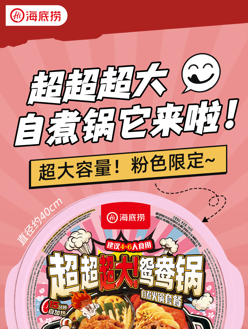 海底捞超大鸳鸯锅自热火锅辣条风味番茄渣渣牛肉户外聚餐4-6人