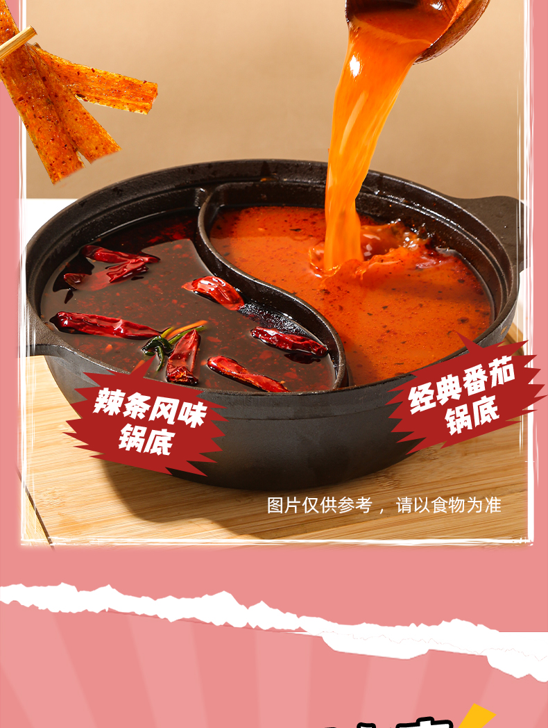 - ¥69.90超大鸳鸯锅【番茄渣渣牛肉x辣条风味】980g*1盒