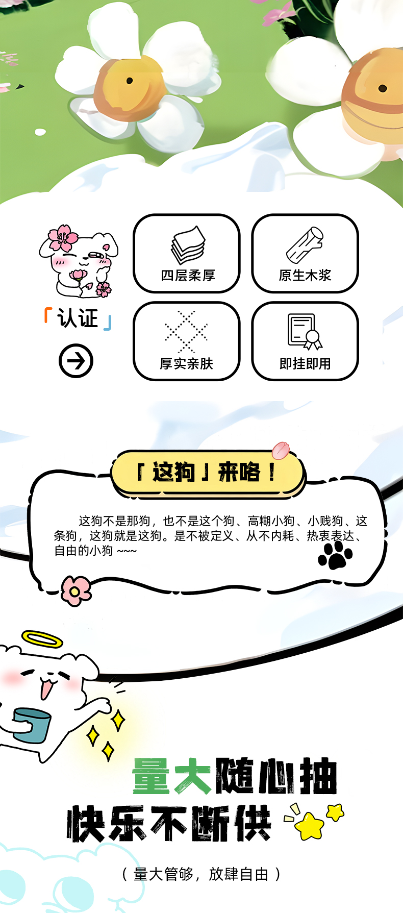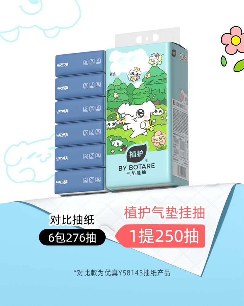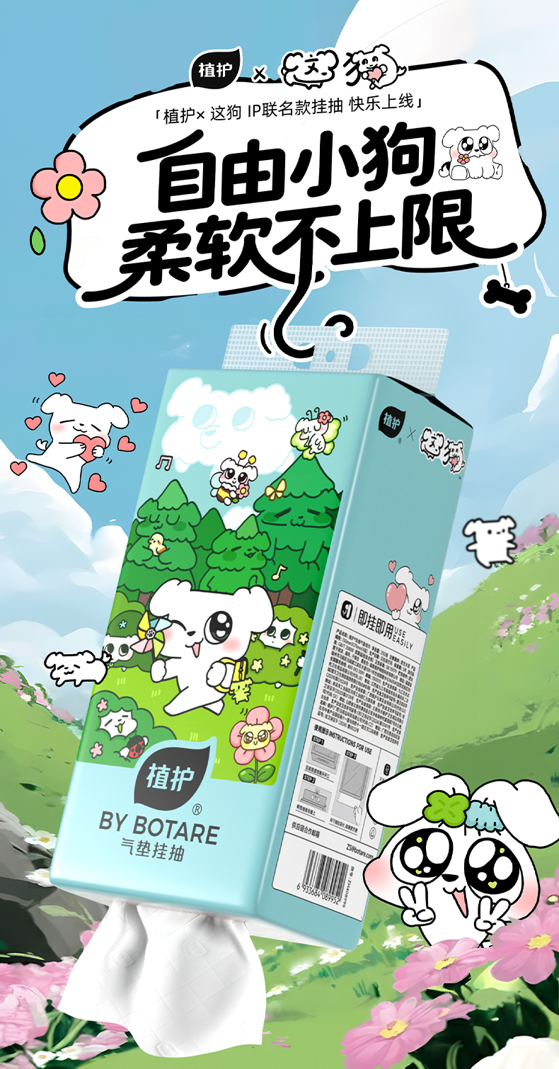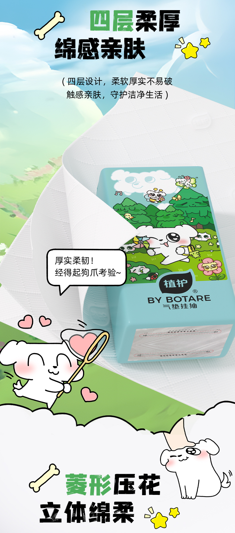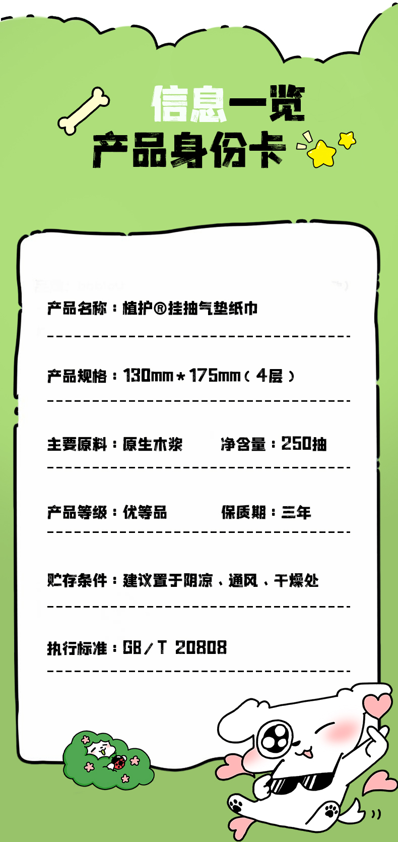 植护 挂抽气垫纸巾(这狗联名款)130*175/4层 250抽 12提/箱