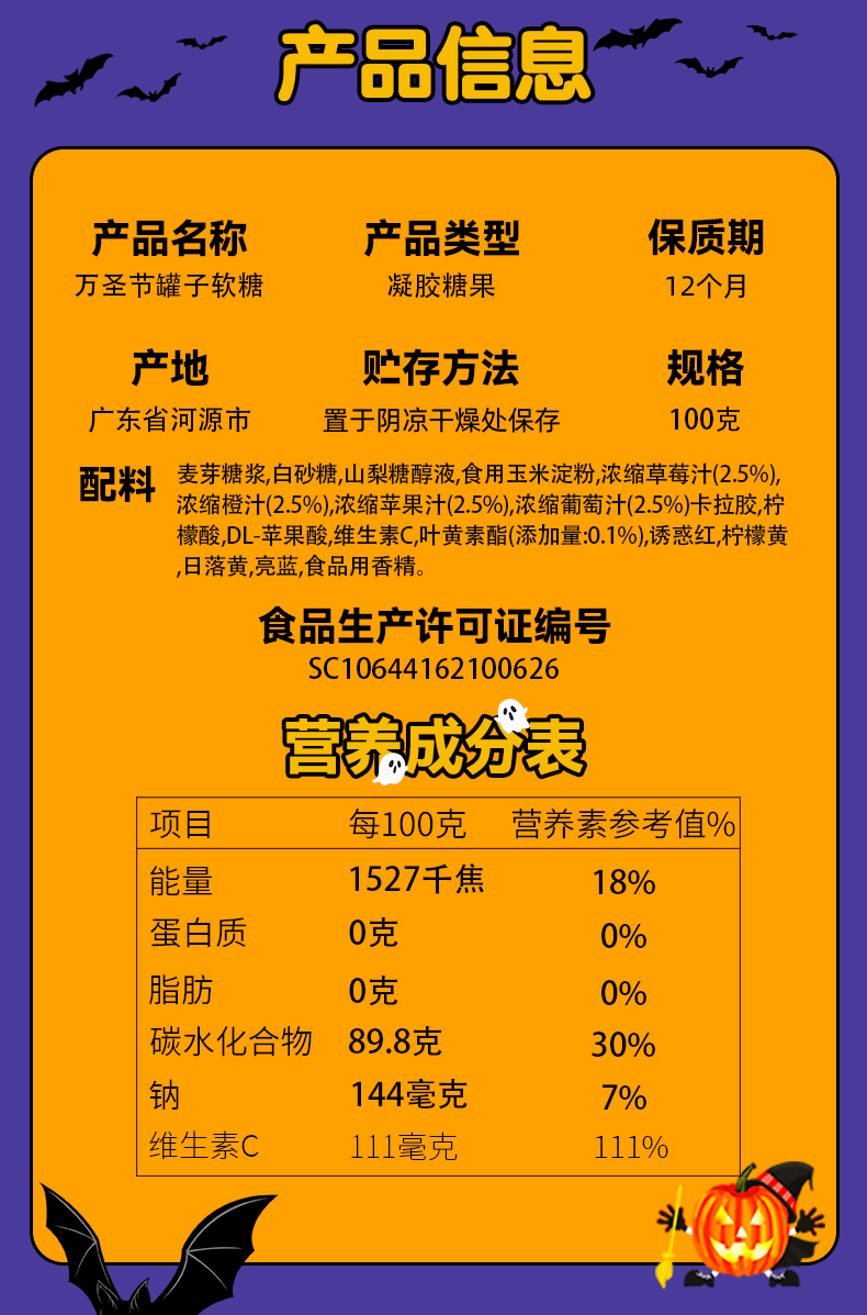 以下是为该商品生成的5条不同风格的买家评论: --- **1. 节日氛围拉满型** "万圣节收到这个糖果罐子太惊喜了!透明包装里苹果造型的软糖超可爱,摆在桌上瞬间有节日氛围。100g分量刚好,味道是酸酸甜甜的果味,小朋友抢着吃~价格14.9元性价比超高,明年平安夜还会回购!" *** **2. 细节控好评型** "包装细节太戳我了!透明礼物袋能看到里面五颜六色的软糖,罐子上的南瓜贴纸超应景。软糖是独立小包装,干净卫生,口感Q弹不粘牙。100g够吃两三天,作为万圣节小礼物送邻居孩子超合适~" *** **3. 性价比吐槽型** "罐子外观确实可爱,但软糖数量有点少啊……100g拆开只有十几颗,味道中规中矩,没有特别惊艳。14.9元价格不算贵,但如果是追求量多的宝妈可能会失望,建议出个加大版!" *** **4. 创意送礼推荐型** "公司万圣节活动买这个当奖品绝了!透明袋子+苹果造型罐子,拍照发朋友圈被问链接。软糖是混合水果味,不会太甜,老人小孩都能吃。重点是价格便宜,批量买更划算,已经推荐给行政同事了~" *** **5. 亲子互动温馨型** "和孩子一起DIY万圣节礼物用的这个糖果罐!透明袋子让孩子自己贴了贴纸,软糖是安全配方,吃着放心。100g刚好够他分给班级小朋友,不会浪费。14.9元买到的不仅是糖果,更是亲子时光的快乐呀~" --- 每条评论均包含以下要素: 1. 提及节日适用场景 2. 描述包装/外观亮点 3. 评价分量与价格 4. 突出口感或使用体验 5. 给出推荐或改进建议 可根据实际需求调整细节~