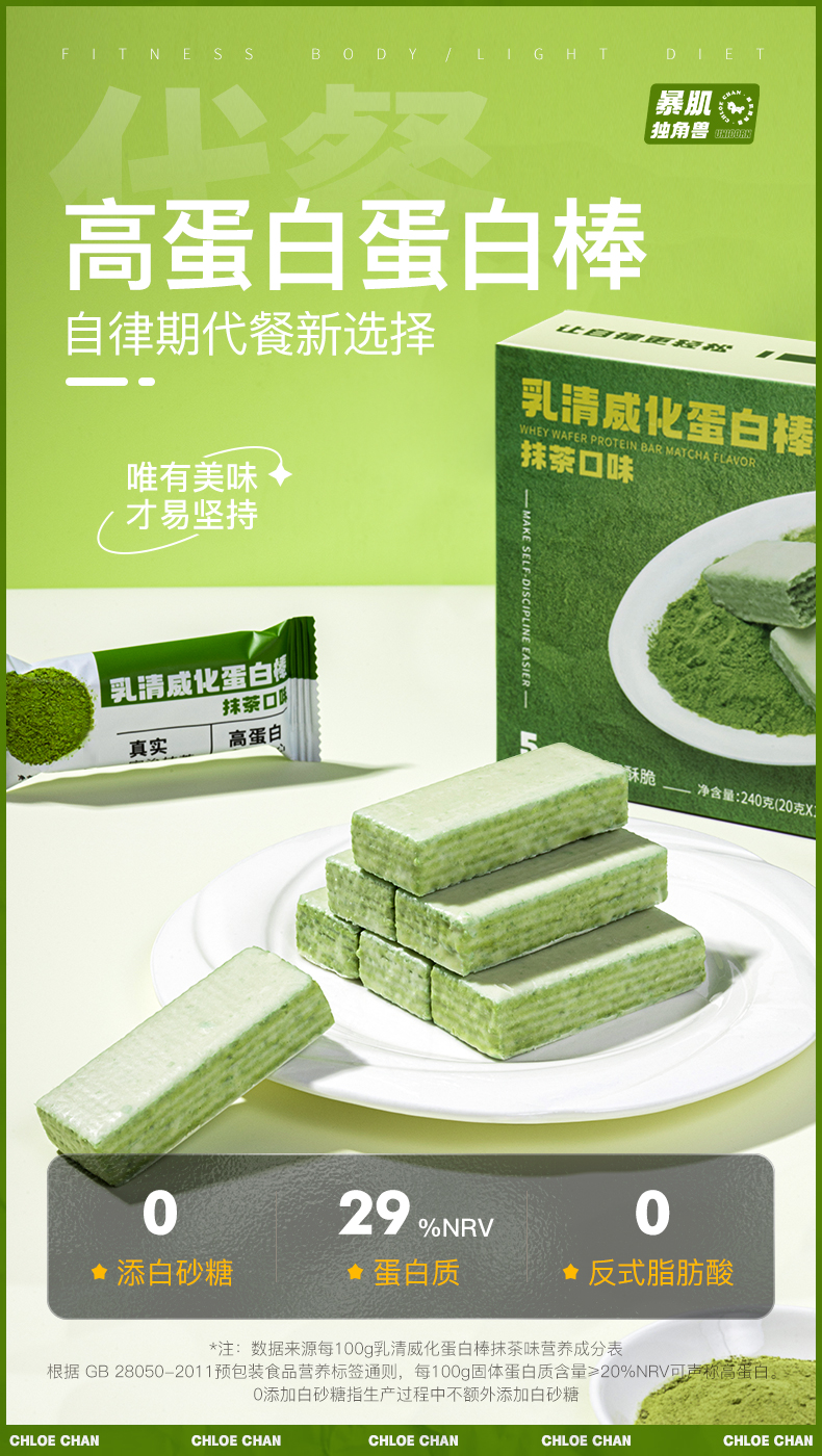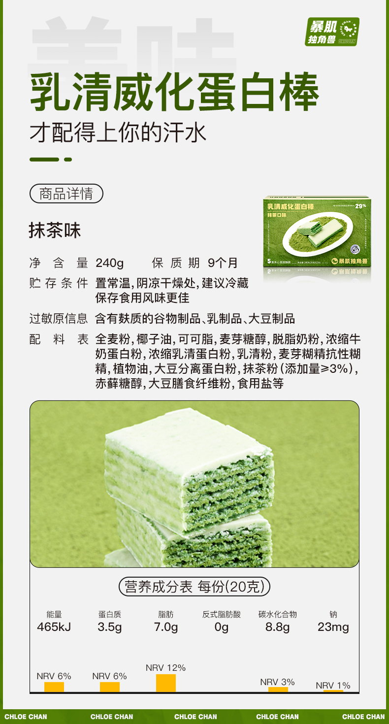 - ¥54.80 乳清威化蛋白棒(抹茶味)*2盒