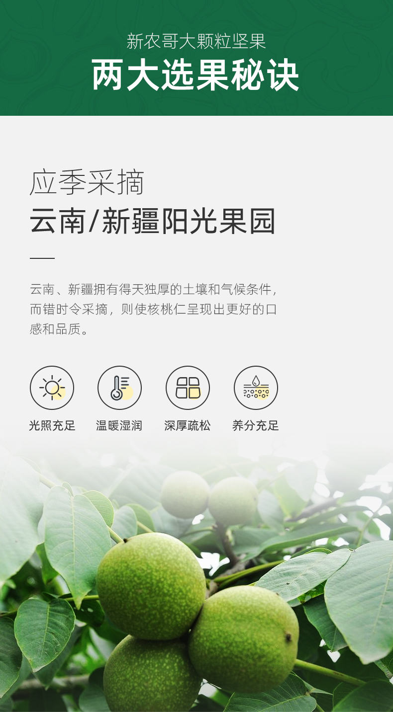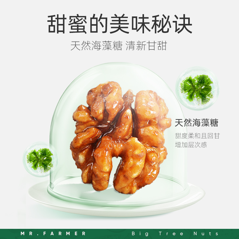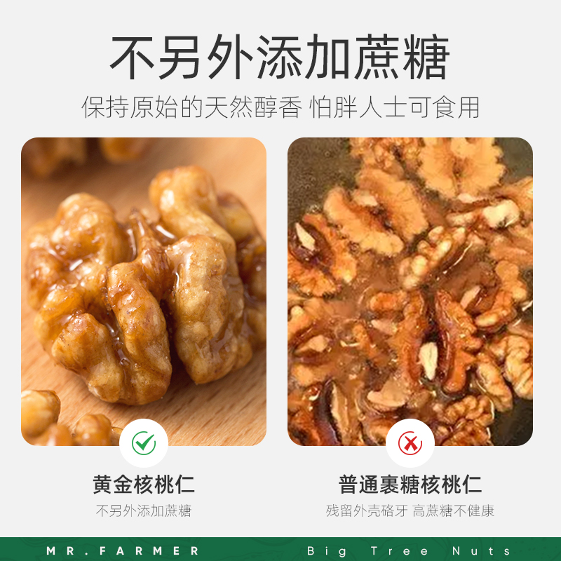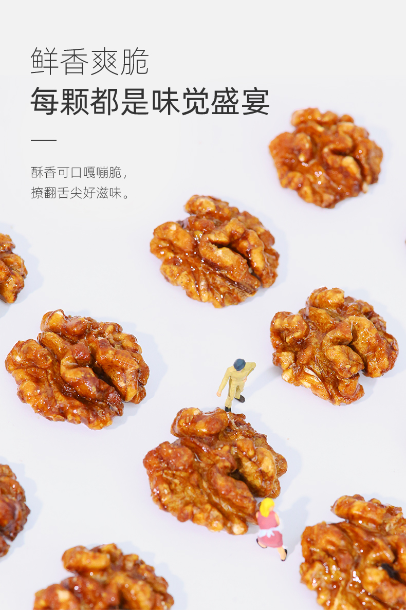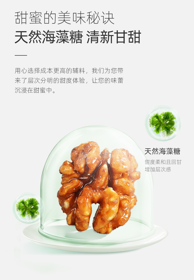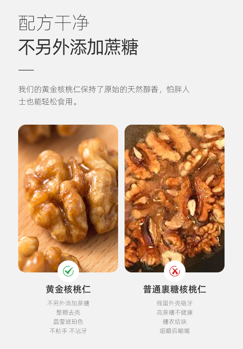 无蔗糖核桃仁,使用海藻糖,升糖慢,糖衣轻薄更甜更香脆;防龋齿,孕妇小孩都能吃。规格好更健康
