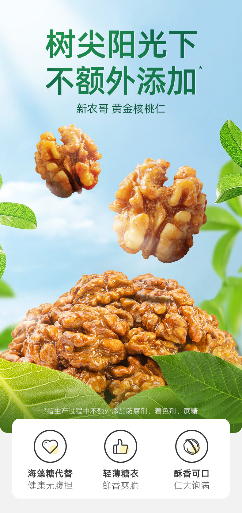 新农哥无蔗糖香脆蜂蜜味琥珀核桃仁50g*6袋装新鲜核桃仁坚果零食d