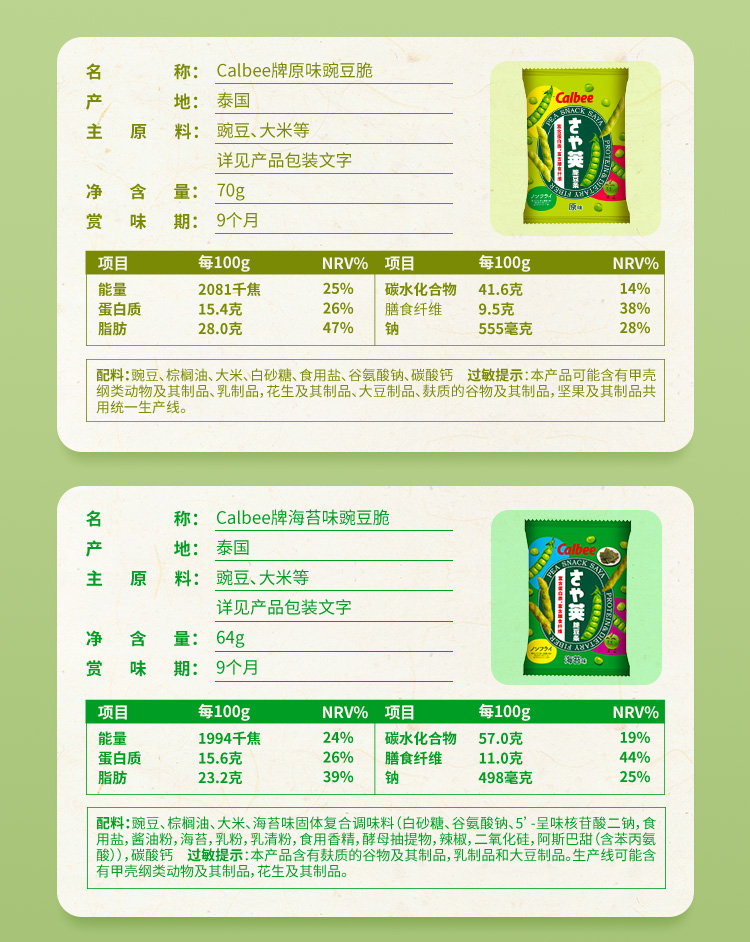 - ¥32.90原味70g*2+ 海苔味64g*2